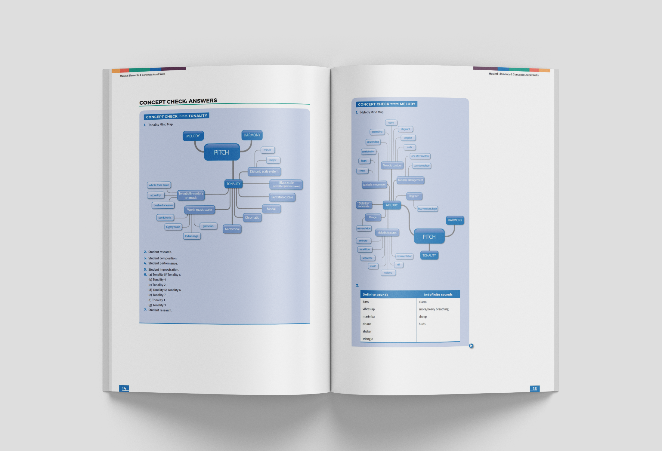 Musical Elements and Concepts: Aural Skills: Teacher Resource is a helpful resource to be used as a guide and to accompany the Musical Elements and Concepts: Aural Skills: Student Workbook. It consists of suggested answers for concept checks and chapter review questions; general questions for each element or concept; details and listening activities for additional suggested listening activities; detailed answers to the Musical elements and concepts activities, overview of all elements or concepts; extra teaching activity ideas